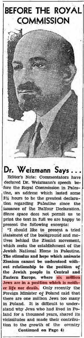 Chaim Weizmann, "Dr. Weizmann stresses Jews' need of