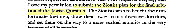 "the final solution of the Jewish question" to Tsar Nicolas