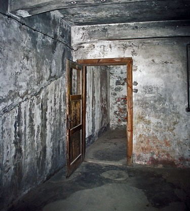 Vue de la prétendue "chambre à gaz" d’Auschwitz, en Pologne