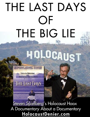 En 1994, le cinéaste juif Steven Spielberg a créé la Shoah Visual History Foundation qui a recueilli les témoignages filmés de plus de 50000 survivants de l’Holocauste dans 57 pays. En 1998, Steven Spielberg a produit un documentaire intitulé « The Last Days ». Le documentaire est centré sur les témoignages de cinq juifs hongrois rescapés de l’Holocauste. Ce documentaire a reçu une Academy award en 1999. Le sous-titre du documentaire de Steven Spielberg affirme que « tout ce que vous allez voir est vrai ». En réalité, une contre-enquête effectuée par Eric Hunt et intitulée « The Last Days of the Big Lie » a démontré qu’il ne s’agit que d’un tissu de mensonges et de faux témoignages, ainsi qu’on va le découvrir ci-dessous.