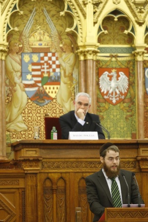 Idézet a Zsidó.com-ról: "Oberlander Báruch rabbi beszéde után Balog Zoltán arról beszél, hogy annak ellenére, hogy eme falaknak szomorú múltja is van, valami fejlődés mégis tapasztalható, ennek kapcsán említette a 2001. évi törvényt, melyben az Országgyűlés elrendelte a Holokauszt emléknapot."