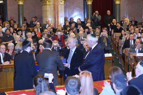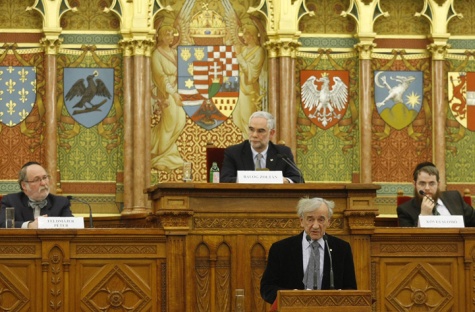 Így történt most is: december 9-én Elie Wiesel, a holokauszt-ipar egyik megalapítója méltóztatott Judapestre fáradni, hogy megszemlélje, hogy áll az antifasiszta küzdelem ügye (és semmiképpen sem az országfelvásárlásé, valamint a cionista cenzúra bevezetéséé vagy a Gárda felszámolásáé, természetesen). Nosza, fideszes vezénylettel knesszetté is változtatták rögvest az Országházat, bizonyítva, pillanatokba telik majd az átalakítás, ha az elszaporodó palesztinok által sanyargatott tel-avivi kormányzat hivatalosan is áthelyezné székhelyét a felvásárolt ország fővárosába, és bűnbánóan hallgatták a vezetőség szavaitaz osztály-, khmm, a rasszizmus elleni harc további fokozásának fölötte szükséges voltáról. Wiesel bácsi pedig, a várakozásoknak megfelelően, irányt is mutatott: börtönbe azokkal, akik uralmunk vallási-ideológiai alapjának, az ún. holokausztnak bármelyik tételét meg merik kérdőjelezni!