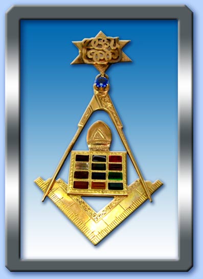 Sopra: pendaglio massonico, sormontato da una Stella di Davide, appartenete ad un Gran Maestro. Tra la Squadra e il Compasso appare l'Efod, o Pettorale del Giudizio, un paramento che indossava il Sommo Sacerdote dell'antica religione mosaica su prescrizione divina (Es 28, 15-30).
