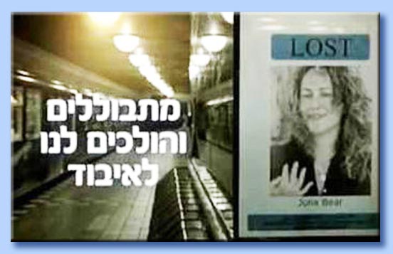 Sopra: spot pubblicitario che invita gli ebrei americani a non assimilarsi e a recarsi in Israele. Sotto la fotografia di una donna sposata con un goy (un non ebreo) è scritto «lost» («perduta»).