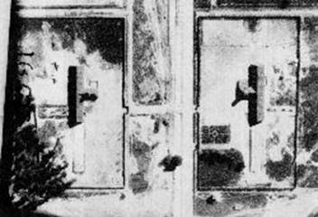 どうか鉄のロッドを曲げ戻さないでいただきたい。最近の写真をみると、このようなことをしているときに、誰かがこれらの鉄のロッドのうち2本を折ってしまったことがわかる。そのようなことをするつもりではなくして、一本のロッドを折ってしまったのは1997年2月のFredrick Töben博士であった。もう1本のロッドを折ってしまった人物はわからない。Carlo Mattogno, "Keine