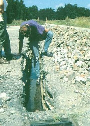 頭蓋骨の断片だけが、壕の隅に残っていた。M. Dragan博士の話。私は、1999年6月に、彼が遺骸を調査することを手助けした。 |