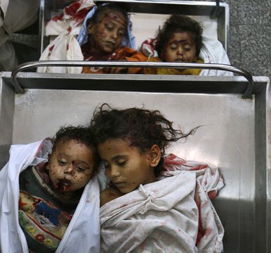 O zbrodniach Izraela na narodzie palestyńskim, szczególnie w Strefie Gazy, oficjalnie wiadomo. Zawsze jednak tego typu informacje są mocno tonowane w wiodących mediach światowych – wiadomo, że nikt nie chciałby wywoływać „nastrojów antysemickich”, ani irytować ulubionego narodu demoliberałów, tak więc wszelkie, nawet najokrutniejsze poczynania syjonistycznego reżimu, spotykają się albo z przemilczeniem, albo są przedstawiane „przez palce”. Nieliczne niezależne media nie mają aż takiej siły przebicia, aby prawdziwe oblicze polityki zbrodni Izraela pokazać szerszemu gronu odbiorców, a często zbyt długie artykuły zniechęcają do czytania. Zdjęcia mówią jednak więcej niż tysiąc słów. Poniżej kompilacja zdjęć tych, którzy są najmniejsi, najbardziej bezbronni i przede wszystkim najmniej winni własnego cierpienia wywołanego przez izraelski terroryzm…