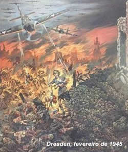Na noite assassina de 13 para 14 de fevereiro de 1945, o maior criminoso de todos os tempos, Winston Churchill, permitiu que caíssem cerca de 700.000 bombas incendiárias sobre Dresden. Sobre dois habitantes caíram, portanto, uma bomba. Sobre isso escreveu o jornal Welt em 3.3.1995, pág. 8: “Quando a cidade se transformou em um crematório… Professor Dietmar Hosser, do Instituto para Materiais, Infra-estrutura e proteção ao fogo, Braunschweig, considera provável que a temperatura da superfície tenha atingido até 1.600 °C.”
