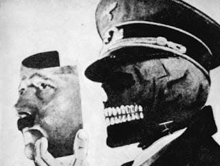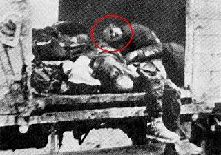 Mais uma falsficação absurda. Notem os quatro supostos militares alemães na parte superior da fotografia e suas iluminações solares irregulares e impossíveis. Parece que não há limites para os falsificadores da história...