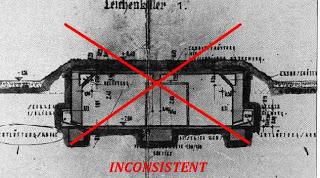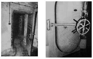 A foto esquerda mostra a porta de entrada de uma suposta câmara de gás em Auschwitz, que além de ser de madeira, abre por dentro e para dentro. Na fotografia da direita, porta de uma das câmaras de gás nos EUA para execução de prisioneiros condenados a morte, altamente reforçada para evitar vazamentos e foi desenvolvida para a execução de UM prisioneiro por vez e não de milhares. Obs: Ambas são da década de 30/40.