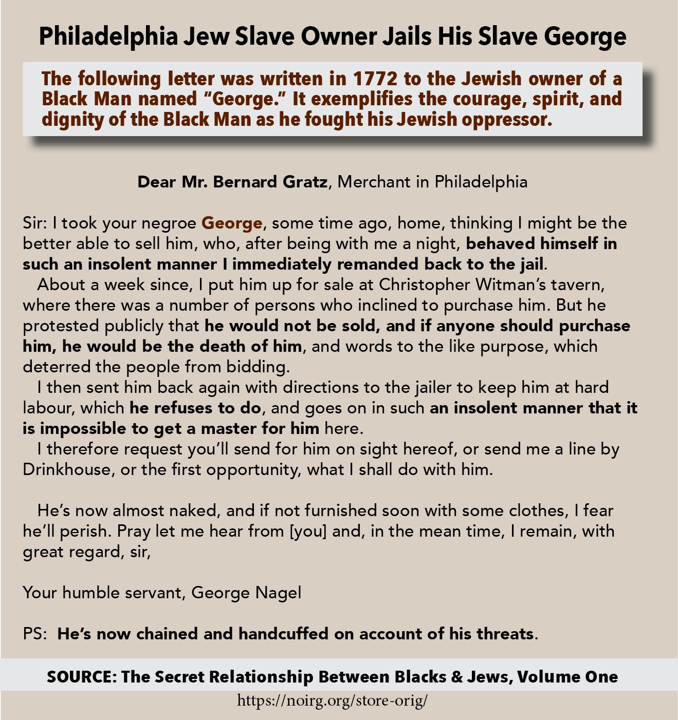 Jews, Black Slavery, intimidation of Black organizations, Nation of