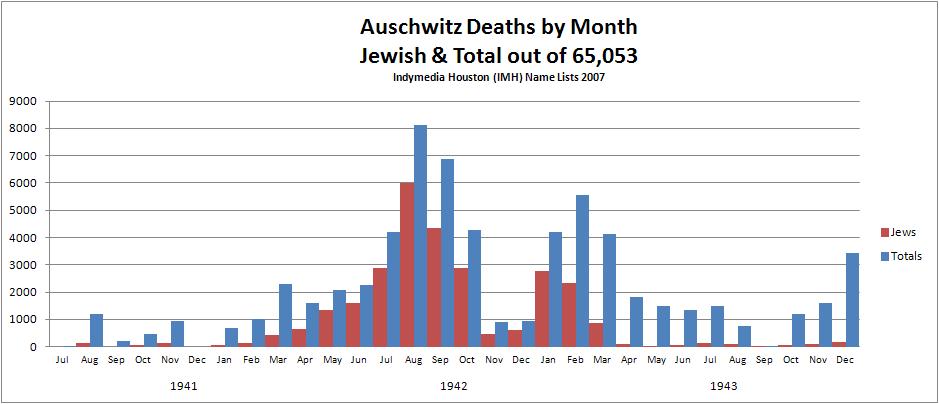Procesele de la Nürnberg ne-au spus că 4 milioane au fost uciși la Auschwitz și aceasta a fost o dogmă oficială de zeci de ani și toată lumea a crezut că este un fapt. Apoi, în 1989, când sistemul comunist s-a prăbușit, rușii au publicat în arhivele lor înregistrările de deces capturate de la Auschwitz, iar polonezii au revizuit rapid numărul de morți până la 1,5 milioane. Acest lucru nu este încă mai credibil decât minciuna inițială de 4 milioane.Certificatele oficiale de deces ale lagărului Auschwitz au arătat că numărul morților pentru toți deținuții evrei și neevrei de la Auschwitz între mai 1940 și decembrie 1944 a fost de 74.000, din care aproximativ 30.000 erau evrei. Cărțile de deces constau din 46 de volume care documentează fiecare deces la Auschwitz (fiecare certificat de deces constă în numele complet al persoanei decedate, profesia și religia, data și locul nașterii, reședința pre-Auschwitz, numele părinților, ora decesului și cauza de deces, determinat de un medic de tabără). Înregistrările pentru cei mai importanți ani, 1942 și 1943, sunt aproape complete (există și câteva volume pentru anul 1941, dar niciunul pentru anul 1944 sau ianuarie 1945 (când Auschwitz a fost evacuat)).