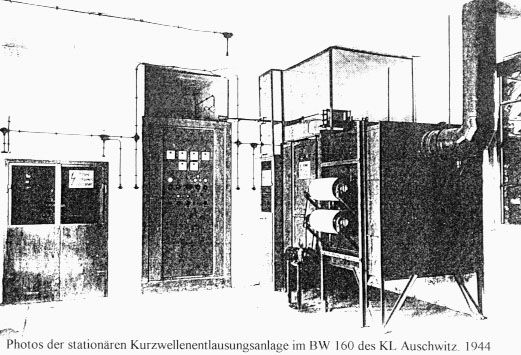 Tehnologia de dezinfectare cu microunde a fost instalată în tabăra de la Auschwitz în vara anului 1944 și s-a dovedit a fi foarte eficientă. Germar Rudolf descrie acest lucru ca fiind „primul predecesor tehnologic din lume al cuptoarelor cu microunde care se folosesc astăzi” A fost mult mai eficient și a durat doar trei minute pe sac de îmbrăcăminte