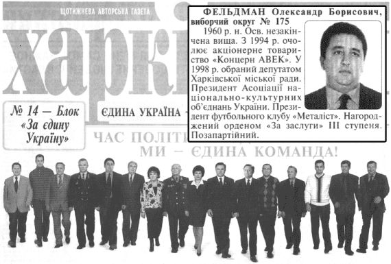 Народного депутата Украины, Президента Ассоциации национально-культурных объединений Украины, Президента Еврейского фонда УкраиныАлександра Фельдмана;