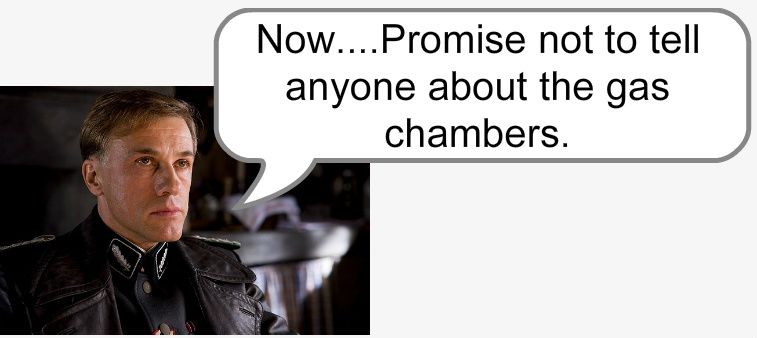"Ahora...promete que no le contarás a nadie sobre las cámaras de gas"