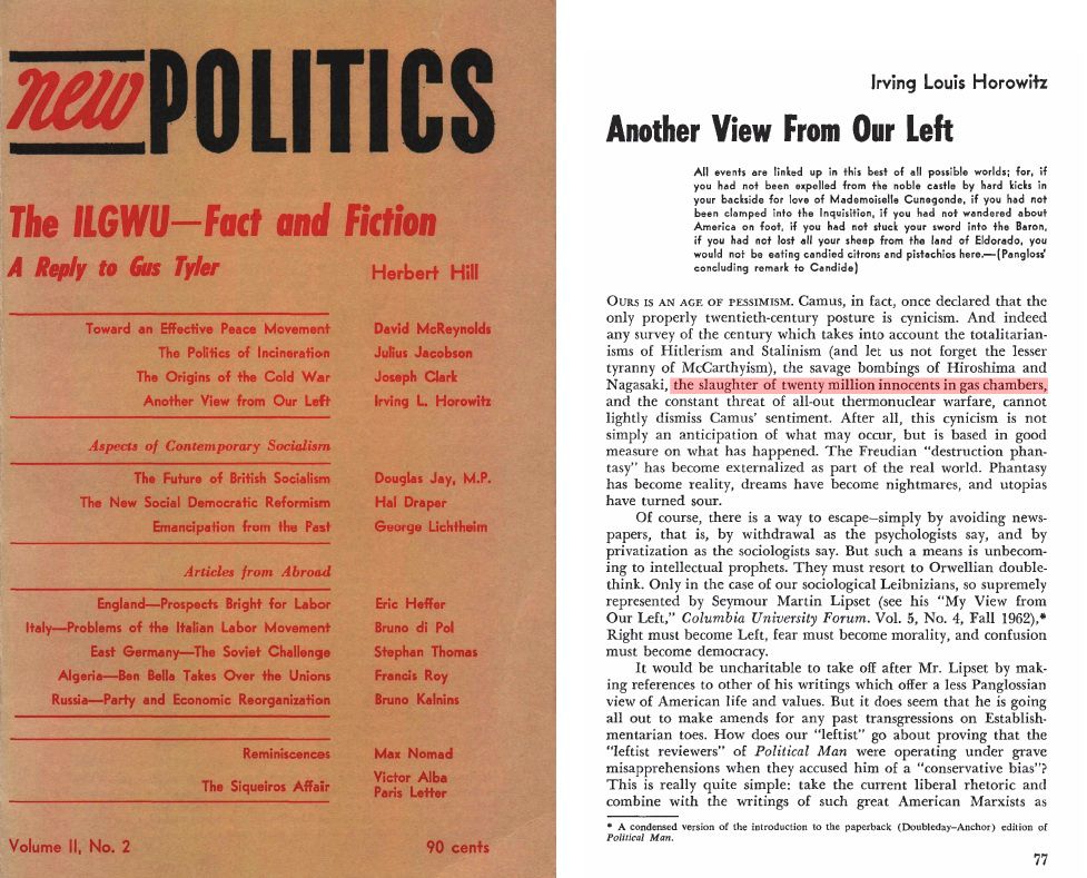 Profesor (((Irving Louis Horowitz))) (1929 – 2012), sociologista judeo-americano: "Hitler gaseó a 20 millones de personas"