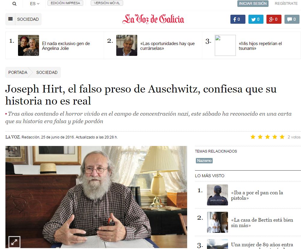 Joseph Hirt, el falso preso de Auschwitz, confiesa que su historia no es real