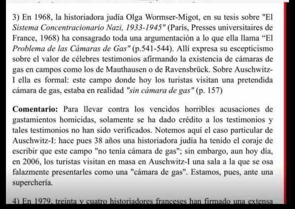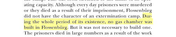 "Yo estuve en los grandes campos de concentración en Alemania. Debo admitir sinceramente que en ningún campo he visto que pudiera parecerse a una cámara de gas."