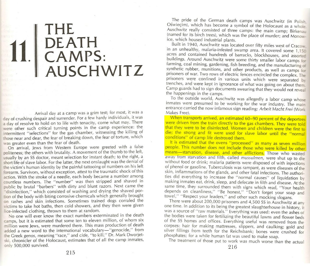 En el capítulo 11: "The Death Camps: Auschwitz", nos informa de que en Auschwitz: