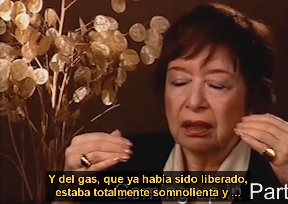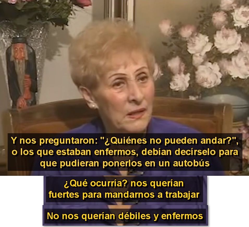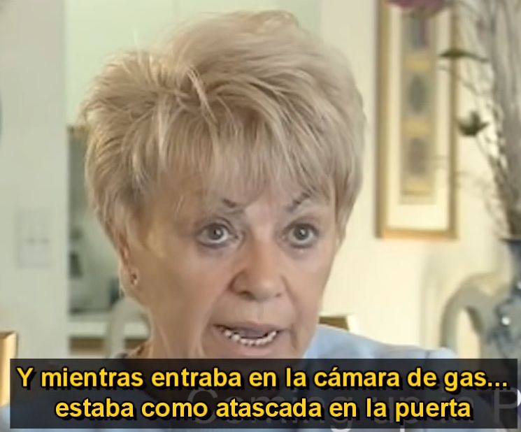 -Cuando después la metieron en la cámara de gas (con otras 1500 personas) se colgó de la puerta, y como no se cerraba porque le pillaron los dedos, la echaron para atrás.