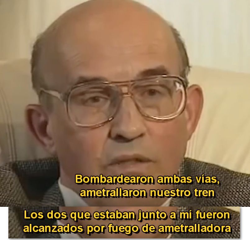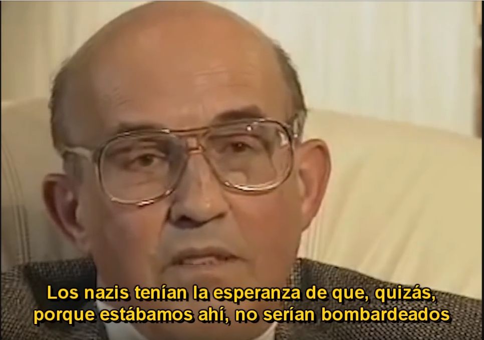 minuto 52:40 ex prisionero judío comenta como los aliados bombardearon y dispararon al tren en el que iban con destino a Dachau