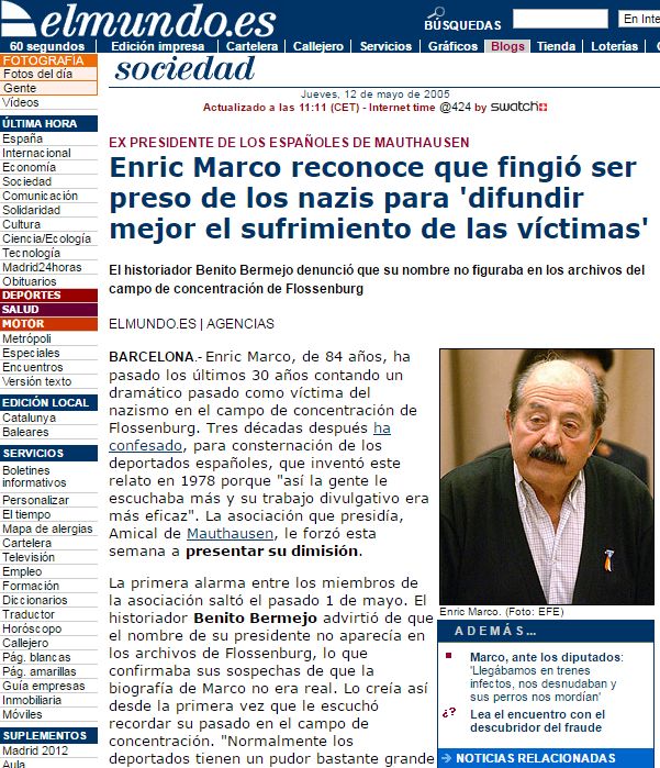 elmundo.es - Enric Marco reconoce que fingió ser preso de los nazis para 'difundir mejor el sufrimiento de las víctimas'