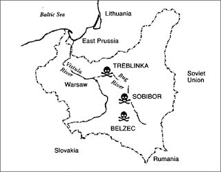 "Cuando los transportes llegaron, un porcentaje estimado del 60-90 porciento de los deportados eran llevados del tren directamente a las cámaras de gas. Les dijeron que ellos debían ser desinfectados. Las mujeres y niños eran los primeros en morir; los fuertes y aptos eran usados para el trabajo esclavo hasta que las 'condiciones normales' de la vida del campo les destruían.