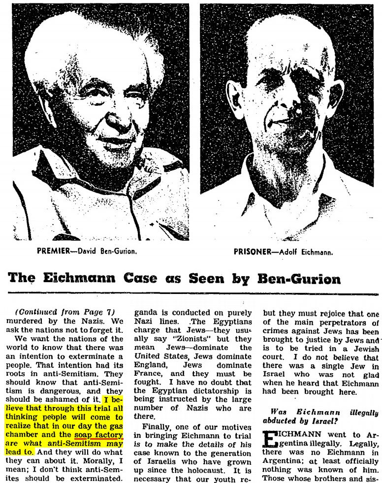 El Primer ministro israelí (((David Ben Gurion))) entrevistado en New York Times 1960 sobre el próximo juicio de Eichmann dijo: