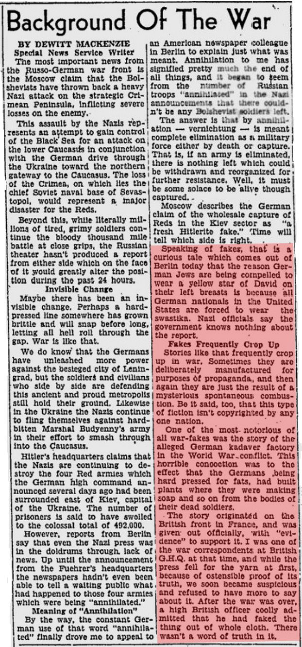 A pesar de ser un "hecho" pesadamente ser implicado en la 2a Guerra Mundial, un genocidio de judíos, las cámaras de gas y los 6,000,000 no son mencionados en: