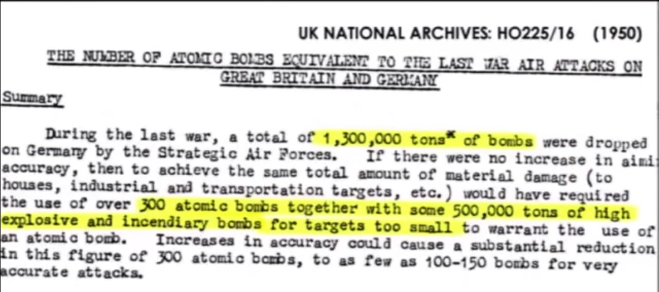 Documentos de los archivos Británicos, confirman que los aliados lanzaron en Alemania 1.300.000 toneladas de explosivos, nada más y nada menos que el equivalente a 300 Bombas atómicas + 500 toneladas extras de explosivos y bombas incendiarias.