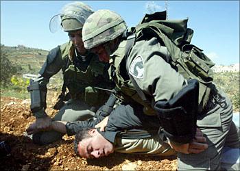 Soldados del IDF arrestando a un granjero Palestino por entrar en sus terrenos
