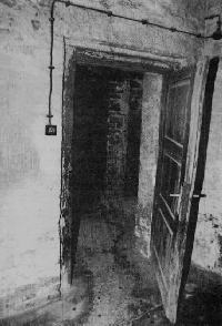Detta är dörrarna till den "gaskammare" som uppvisas för turister i Auschwitz. Som ni ser är detta helt vanliga trädörrar av det sämre slaget, en tunn glasruta som lätt kan krossas sitter på dörren. Denna dörr skulle leda till ett enormt läckage av den giftiga och brandfarliga gasen Cyklon B som även är explosiv vid vissa koncentrationer. Inuti gaskammaren finner vi otillslutna avlopp, förbundna med resten av lägrets avloppssystem, vilket skulle leda till ett ännu större läckage. Jämför dörrarna med dörrarna till den amerikanska gaskammaren och desinfektionsgaskamrarna i de två tidigare bilderna.