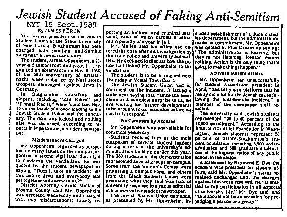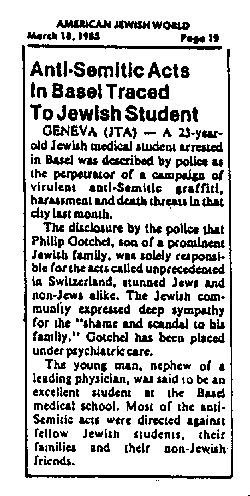 Judiska aktivister välter gravstenar på kyrkogårdarna, klottrar hakkors och smädelser på väggar och skickar "nazistiska" hotbrev till sina medjudar.