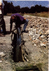 På bilden ser vi den tyske revisionisten och fysikern Germar Rudolf undersökande grundvattennivån.