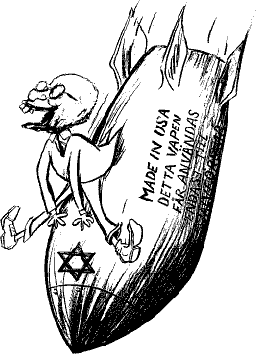 Jag skulle gärna vilja be dig om ursäkt, men jag vet inte om jag har någon anledning. Morgonen den tjugonde december blev jag inkallad till morgonekot i TV4. Där förevisades två teckningar som jag gjort. Den ena föreställande Begin ridande på en bomb "Made in USA", den andra Israels nästa premiärminister Shamir, som försöker domptera en motspänstig svensk dalahäst. Alltså högst vanliga, men Israelkritiska, teckningar som skulle kunnat stå på många svenska tidningars ledarsidor (ja, inte Expressens förstås). Faktum är att den förra först publicerades i Dagens Nyheter. Programledaren påstod att du sagt att dessa teckningar var antisemitiska. Något förbluffad frågade jag om du verkligen sagt så, och hon vidhöll. "I så fall kan hon ta sig i häcken", sa jag. Nu frågar jag alltså dig: är det dina ord? I så fall - står du fast vid detta och kan man få en motivering?