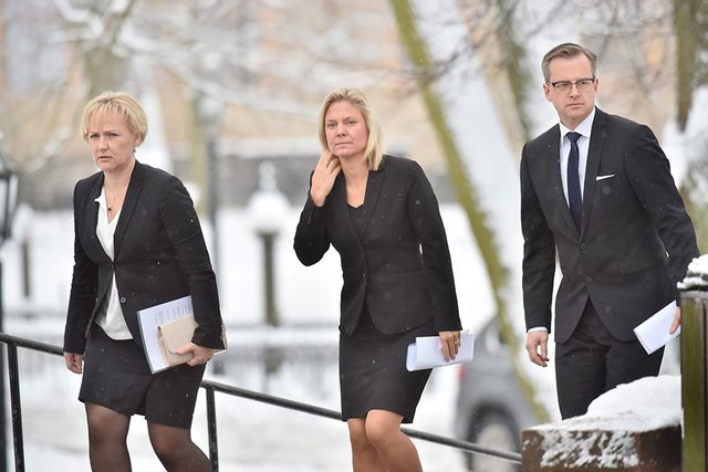 Regeringen med statsminister Stefan Löfven, finansminister Magdalena Andersson och näringsminister Mikael Damberg