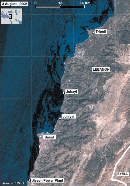 The oil spill caused by the July 14 and 15 Israeli attacks on the