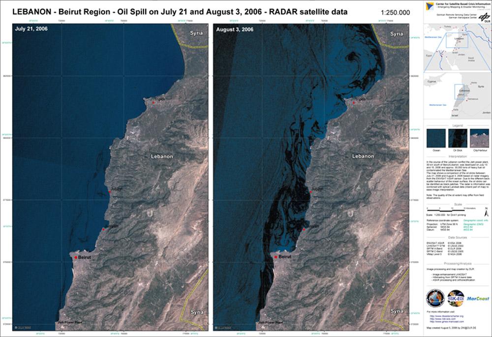 Satellite images of Lebanon Oil Spill