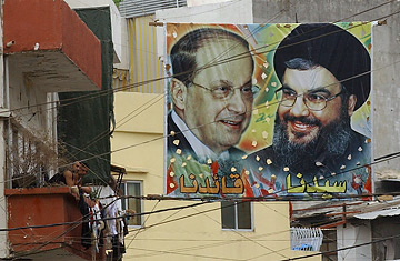 Poster of Christian Maronite leader General Michel Aoun (L), and leader of Hezbollah sheikh Hassan Nasrallah (R), in Beirut, Lebanon, 05 August 2007.