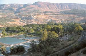 Israel makes the most of water resources at the site of the destroyed village of Al Hamma in the occupied Syrian Golan Heights (Photo I. Humphries).IN MONTHS when Israel is not pounding the life out of its Lebanese neighbors, a tourist to Israel may hire a car and drive around the beautiful northern regions of former mandate Palestine and Syria. Here one may look around at the stunningly green surroundings, go kayaking in the Jordan River, admire the beautiful waterfalls at ancient Banyas in the Golan, or dip one’s feet in the waters of the Sea of the Galilee. Those feeling adventurous may hand over their passports at the gate, enter the Israeli-occupied Alawite village of Ghajar, and look down at the little stream of the Wazzani in the small valley below.