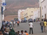 Under the monarchic repression, Ifni still resists: 12/06/2008 a general strike was observed in the whole town. Nobody was working, shpos were closed. But the street were not empty . A great number of women, all in black, went out twice in demonstration, protected just by the just "makhzen" banner. |