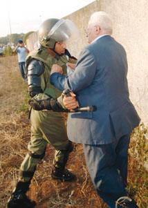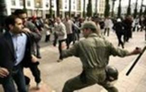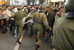 عنصر من قوات التدخل السريع يعتدي على المحامي عبد الرحمن بنعمرو ويمنعه من المشاركة في وقفة احتجاجية (مايو2008)
