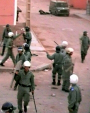 rapporte que "d'autres affrontements ont eu lieu, dans les cités Boulaalam, Lalla Meryem, Al Marssi et Kouloumina, où les policiers répondaient aux jets de pierres, par des tirs de balles, en poursuivant les manifestants dans les maisons et les terrasses".