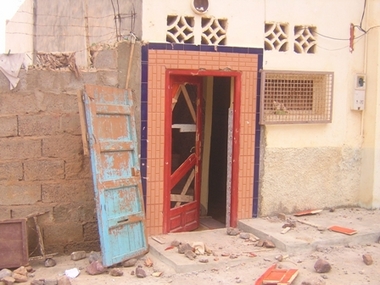 protection le sale drapeau du makhzen. Under the monarchic repression, Ifni still resists: 12/06/2008 a general strike was observed in the whole town. Nobody was working, shpos were closed. But the street were not empty . A great number of women, all in black, went out twice in demonstration, protected just by the just "makhzen" banner. |