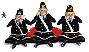Laat ik het concreet stellen. Voor het Istanboel Tribunaal over de Irak-oorlog zijn Bush en Blair schuldig bevonden aan het soort misdaden dat werd veroordeeld in de Nürnberg processen tegen de nazi-leiders. Deze beide politieke leiders hebben de mond vol van hun overtuigingen en idealen; Bush is wat genoemd wordt een herboren christen en van Blair zegt men dat hij gebeden heeft voordat hij de beslissing nam om oorlog te voeren. Maar hun daden komen niet voort uit enige vorm van christendom. Het zijn gewoon hypocrieten.