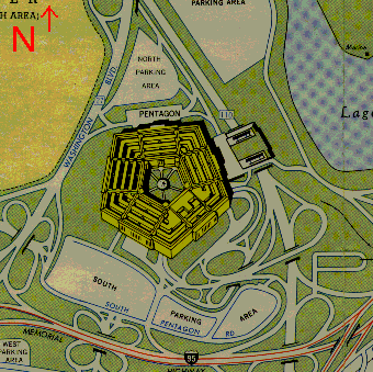 Ce schéma représente le Pentagone, et se souvenant que l'étoile pentagonale était un signe de protection pour les sorciers, on peut en déduire avec un peu de bon sens qu'il s'agit de géométrie et d'architecture d'inspiration "magique" juive. Avec le mensonge du crash d'un Boeing sur le Pentagone le 11 Septembre 2001, le mot "inspiration" se transforme en "conspiration".