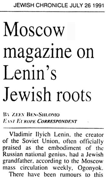 Reporting on Lenin's Jewish Roots. Jewish Chronicle. 26. juli.
