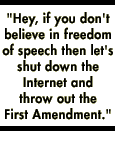 Hey, if you don't believe in freedom of speech then let's shut down the Internet, make sure nobody has a fax machine, computer, or copier, and throw out the First Amendment.