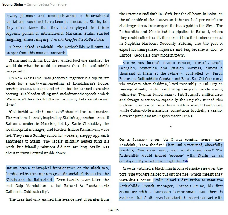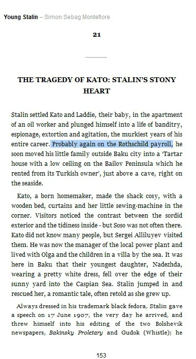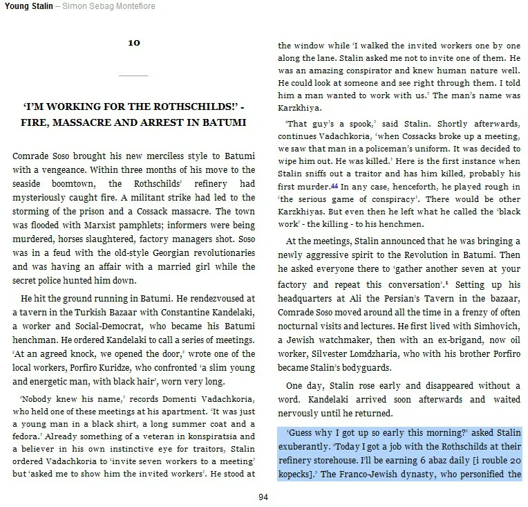 "I'm working for the Rothschilds!" - Josif Jughashvili (Stalin), 1901