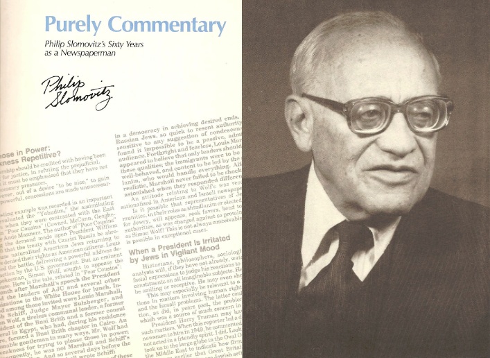This is the book in question, retired newspaperman Philip Slomovitz's Purely Commentary.